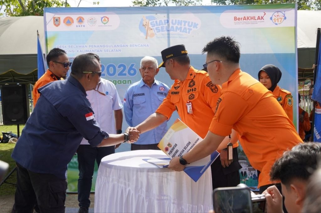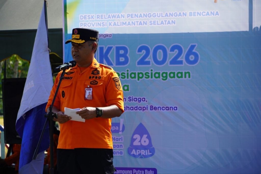 Kepala BPBD Provinsi Kalimantan Selatan, Ronny Eka Saputra, secara resmi membuka kegiatan Desk Relawan Penanggulangan Bencana dalam rangka peringatan Hari Kesiapsiagaan Bencana (HKB) Tahun 2026 di Kampung Putra Buluh, Kabupaten Banjar, Selasa (28/4/2026).