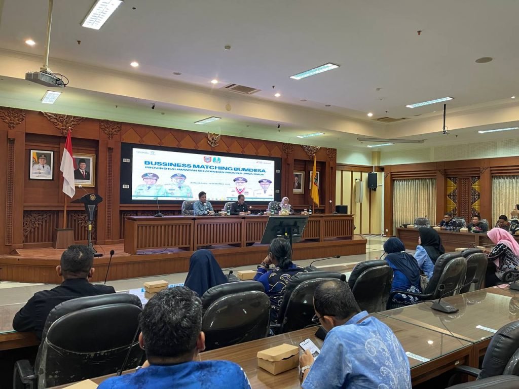Pemerintah Provinsi Kalimantan Selatan bersama Pemerintah Provinsi Jawa Timur menggelar kegiatan Business Matching Badan Usaha Milik Desa (BUMDes) di Ruang Rapat H. Maksid, Kantor Gubernur Kalimantan Selatan, Banjarbaru, Jumat (19/12/2025).