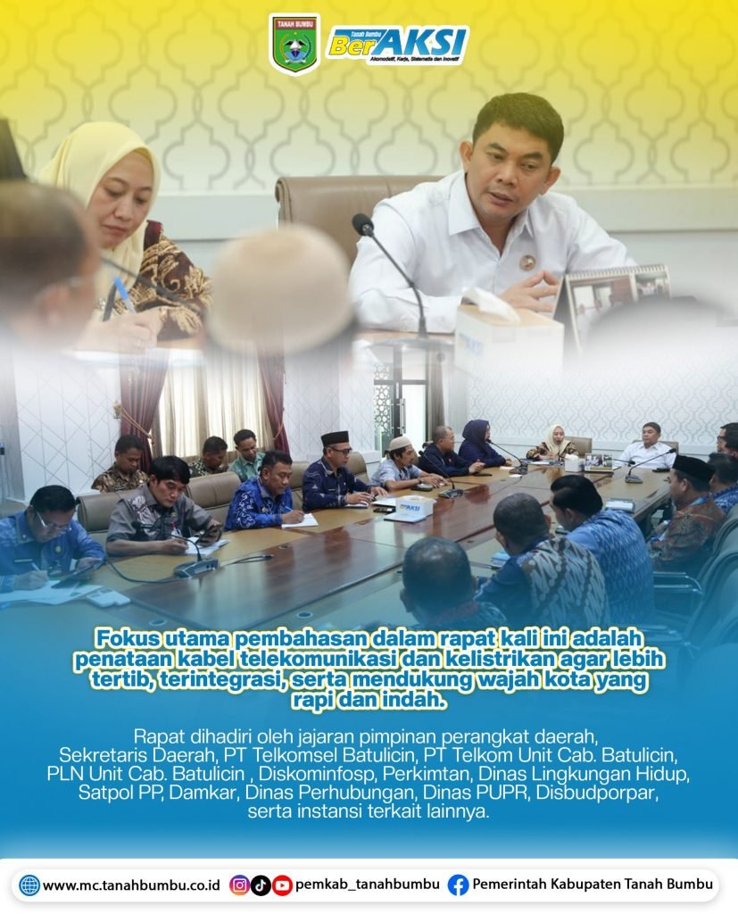 Melalui forum ini, Pemerintah Kabupaten Tanah Bumbu berharap dapat merumuskan kebijakan komprehensif yang menjadi landasan dalam penataan kabel secara bertahap dan berkelanjutan. (San)