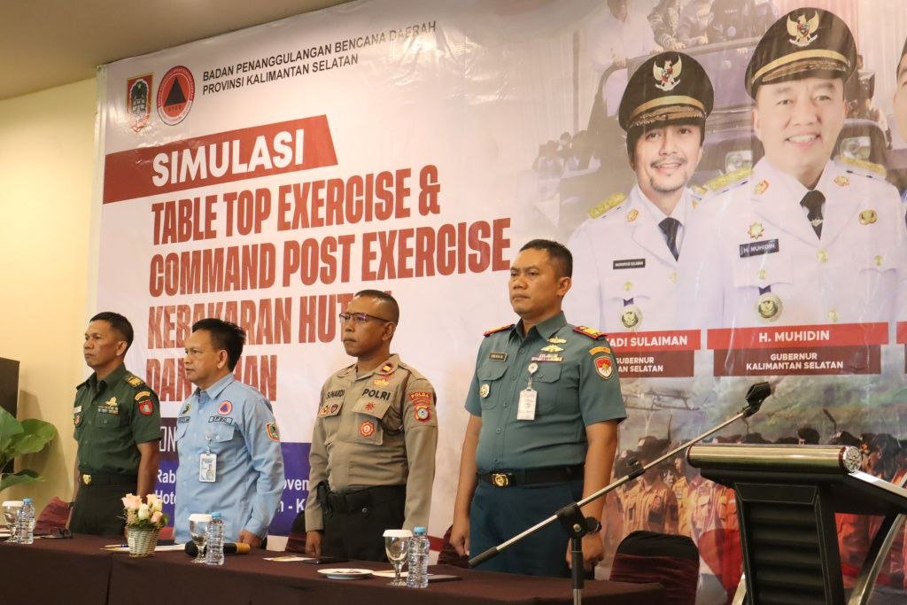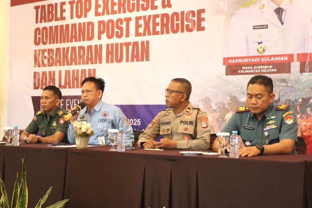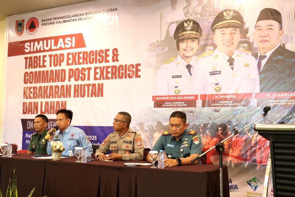 Pemerintah Provinsi Kalimantan Selatan melalui Badan Penanggulangan Bencana Daerah (BPBD) bersama forkopimda, lembaga, dan organisasi kebencanaan, hingga relawan melaksanakan Simulasi Table Top Exercise (TTX) dan Command Post Exercise (CPX) Penanggulangan Kebakaran Hutan dan Lahan (Karhutla), di salah satu hotel di Banjarbaru, Rabu (19/11/2025).