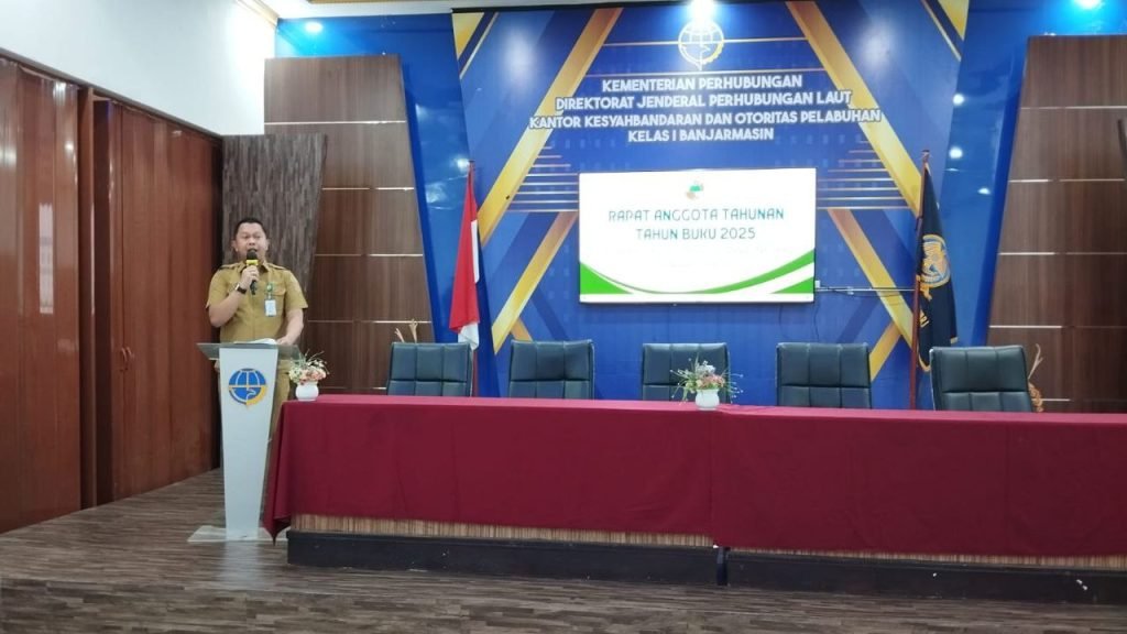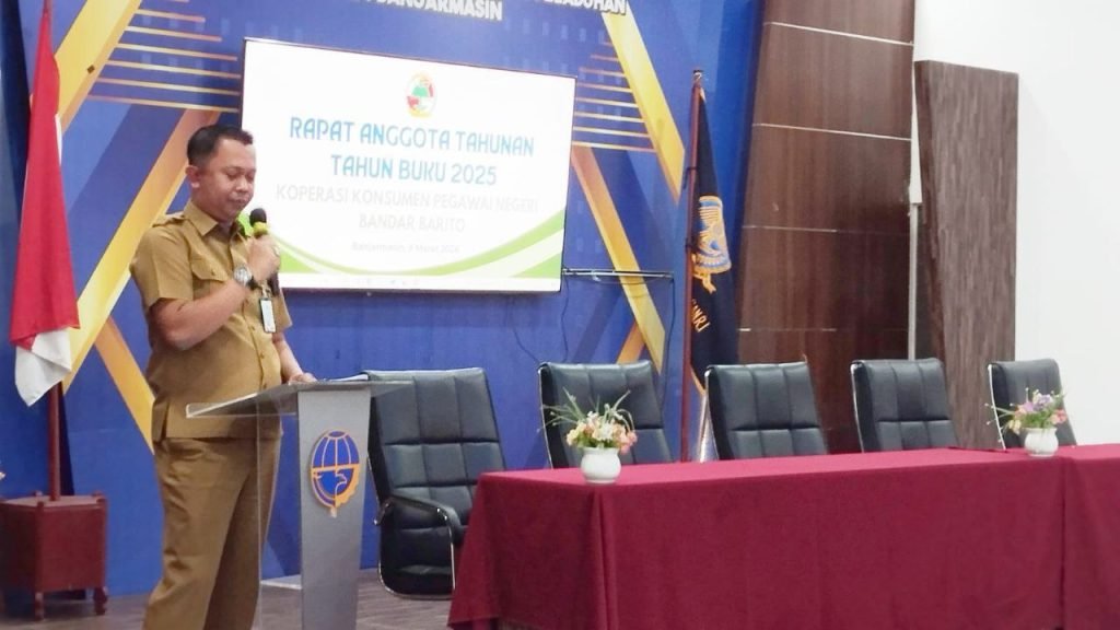 Dinas Koperasi dan UKM Provinsi Kalimantan Selatan mengapresiasi pelaksanaan Rapat Anggota Tahunan (RAT) Tahun Buku 2025 Koperasi Konsumen Pegawai Negeri Kantor Kesyahbandaran dan Otoritas Pelabuhan (KSOP) Kelas I Banjarmasin “Bandar Barito”, yang dilaksanakan di Ruang Borneo Kantor KSOP Kelas I Banjarmasin, Senin (9/3/2026).