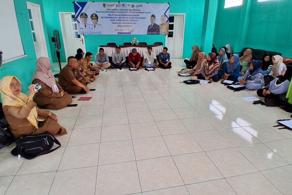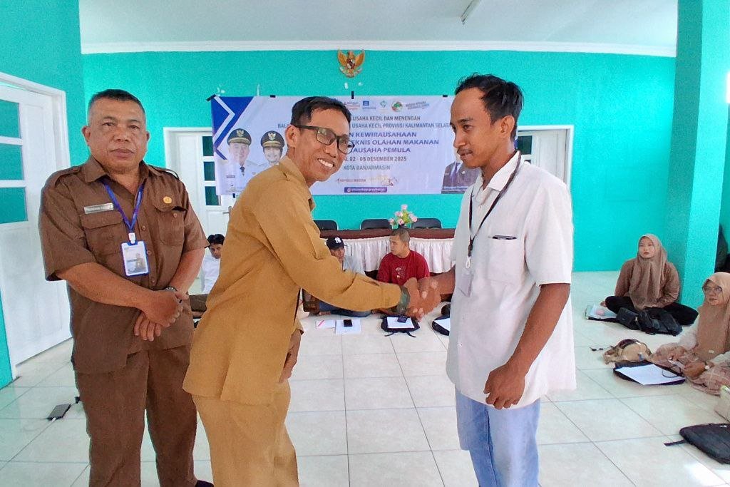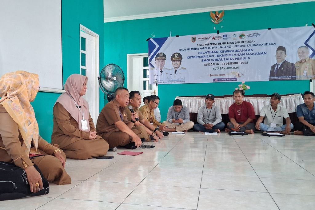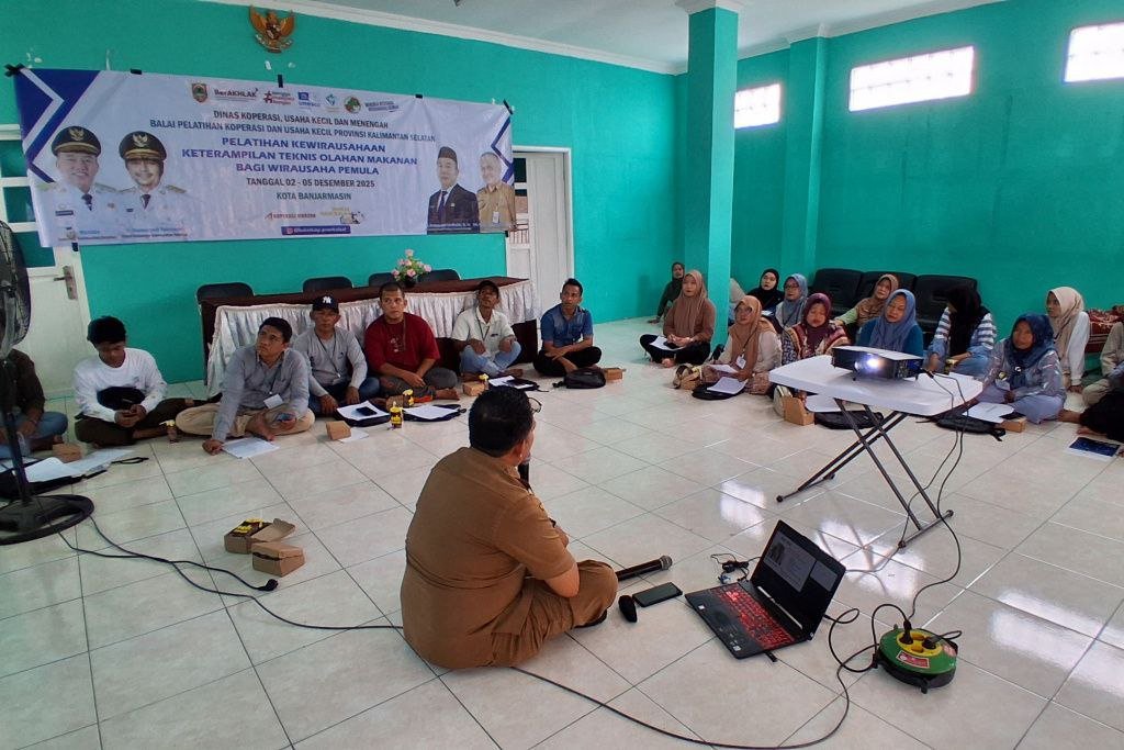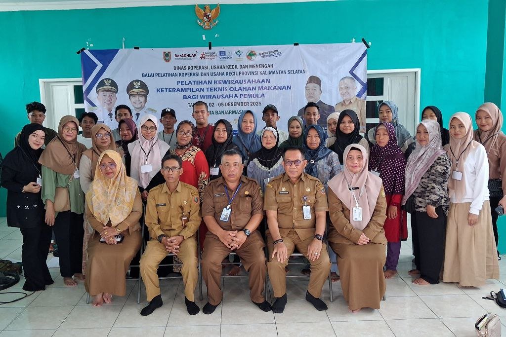 Pemerintah Provinsi Kalimantan Selatan melalui Dinas Koperasi dan UKM terus berupaya memperkuat kapasitas pelaku usaha kecil di Banua, salah satunya melalui penyelenggaraan Pelatihan Keterampilan Teknis Olahan Makanan bagi Wirausaha Pemula/Calon Wirausaha, di Aula Kantor Kelurahan Kertak Baru Ulu, Kota Banjarmasin, Selasa (2/12/2025).
