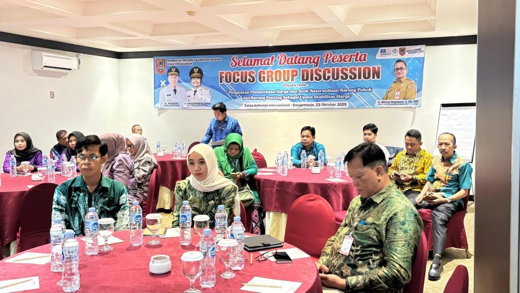 Dalam sambutannya, Hasan menyampaikan bahwa kegiatan FGD ini memiliki makna strategis dalam mendukung upaya pemerintah menjaga stabilitas harga dan ketersediaan bahan pokok di Kalimantan Selatan. Menurutnya, dinamika harga pangan dan barang pokok sangat berpengaruh terhadap inflasi daerah serta berdampak langsung pada daya beli dan kesejahteraan masyarakat.
