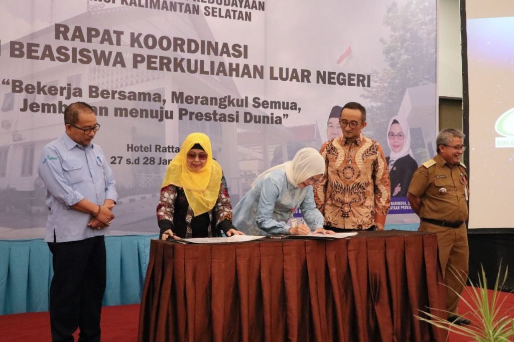 Penandatanganan MoU dilakukan oleh Kepala Disdikbud Kalsel, Galuh Tantri Narindra, bersama perwakilan kedua yayasan, serta disaksikan oleh Asisten Bidang Perekonomian dan Pembangunan Setda Provinsi Kalsel, Ariadi Noor, yang mewakili Sekretaris Daerah. Kegiatan ini berlangsung dalam Rapat Koordinasi Persiapan Beasiswa Perkuliahan Luar Negeri yang dihadiri ratusan kepala SMA dan SMK Negeri se-Kalimantan Selatan, di Banjarmasin, Selasa (27/1/2026).