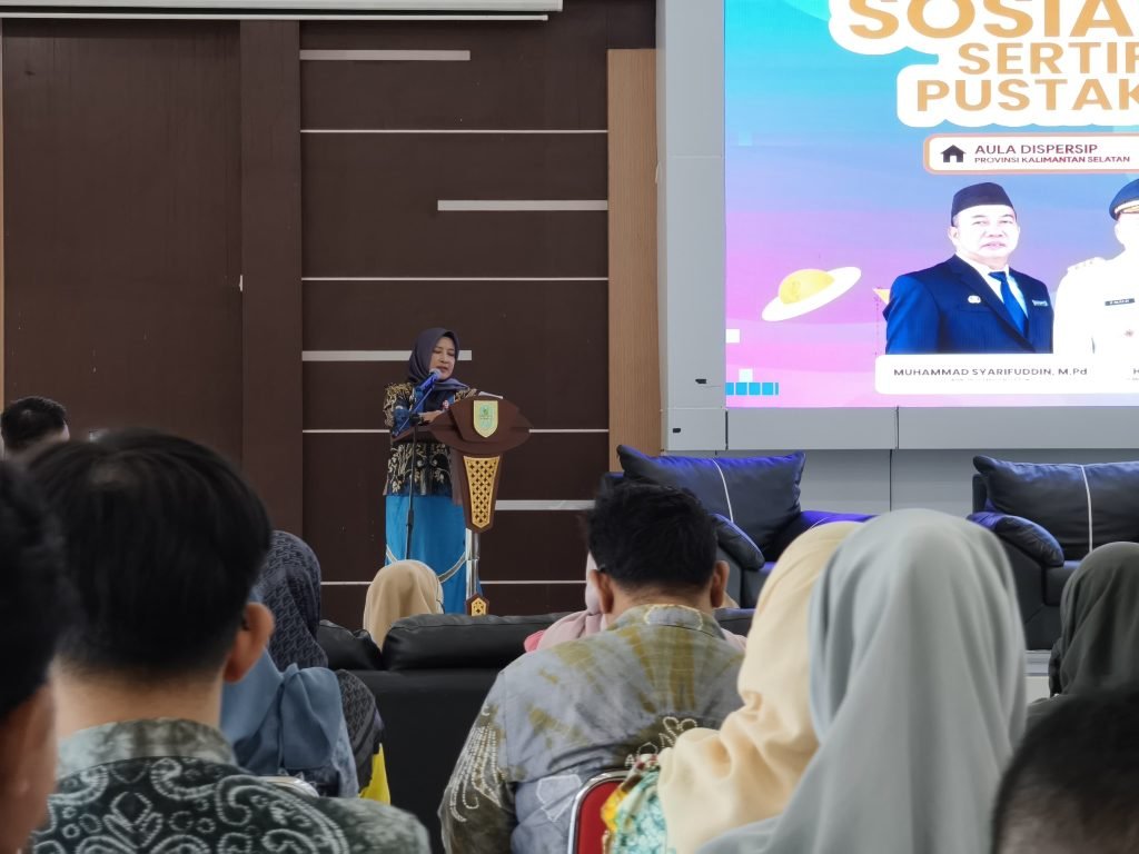 Dinas Perpustakaan dan Kearsipan (Dispersip) Provinsi Kalimantan Selatan menggelar sosialisasi sertifikasi pustakawan tingkat provinsi di Aula Dispersip Kalsel, Banjarmasin, Kamis (16/4/2026). Kegiatan ini diikuti perwakilan lembaga perpustakaan dan kearsipan kabupaten/kota serta berbagai instansi sekolah di bawah kewenangan provinsi maupun daerah.