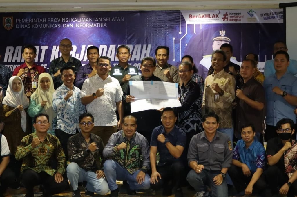Dinas Komunikasi dan Informatika (Diskominfo) Provinsi Kalimantan Selatan melaksanakan penandatanganan komitmen bersama dengan perwakilan Diskominfo dan BAPPEDA 13 kabupaten/kota di Kalsel. Penandatanganan ini menunjukan keseriusan Diskominfo dalam mengawal tiga urusan Diskominfo seperti Komunikasi dan Informatika, statistik, serta persandian dan keamanan informasi.