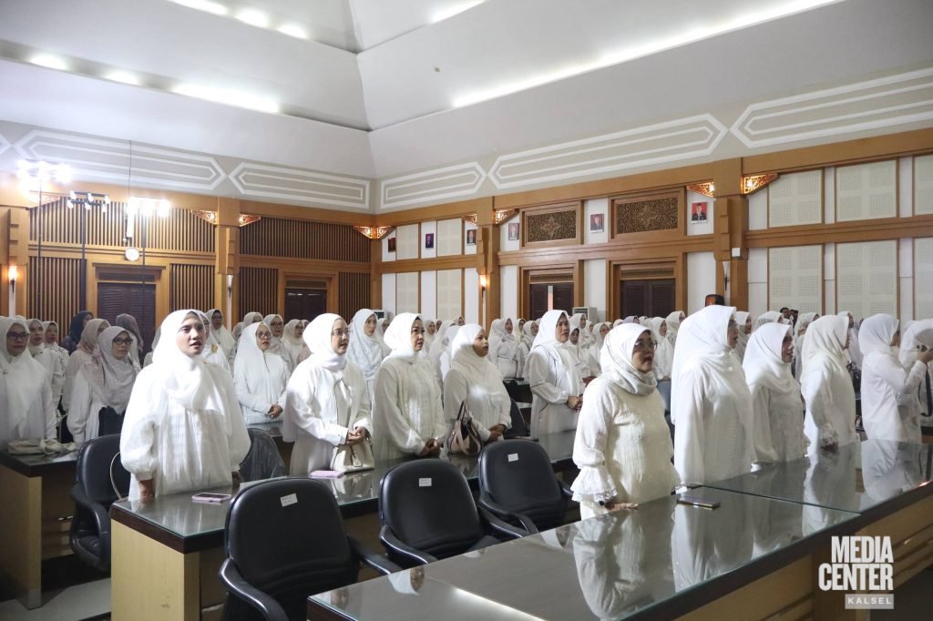 Dharma Wanita Persatuan Provinsi Kalimantan Selatan menggelar pertemuan rutin sekaligus ceramah agama di Aula Khalid Maksum Bappeda Provinsi Kalimantan Selatan, Kamis (5/3/2026).