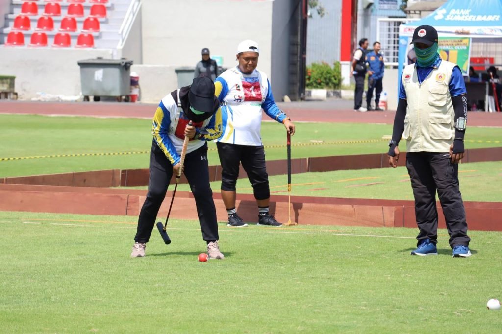 Tim Gateball Double Campuran Kalsel yaitu Rahman dan Siti Wisnah berhasil raih medali perunggu setelah mengalahkan tim Double Campuran Jambi dengan skor 10-13.