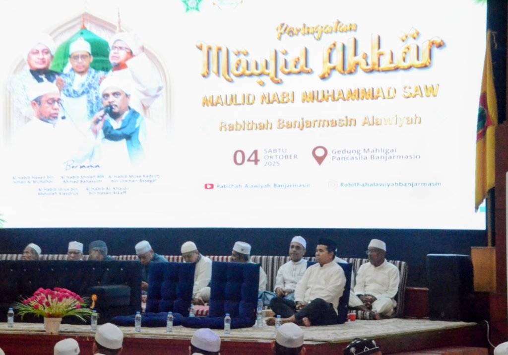 Gubernur Kalimantan Selatan H. Muhidin, yang diwakili Staf Ahli Bidang Ekonomi dan Pembangunan Setda Provinsi Kalsel, Miftahul Chair, menghadiri Maulid Akbar Rabithah Awliyah Banjarmasin di Gedung Mahligai Pancasila, Banjarmasin, Sabtu (4/10/2025).