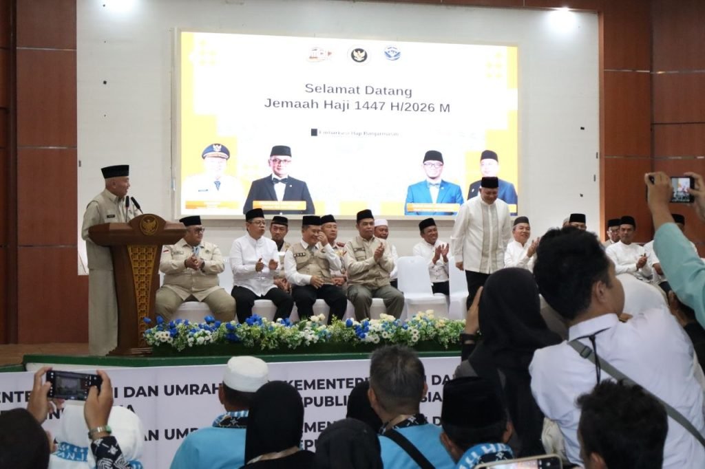 Gubernur Kalimantan Selatan, H. Muhidin, secara resmi melepas keberangkatan jemaah haji kelompok terbang (kloter) pertama Embarkasi Banjarmasin (BDJ) di Asrama Haji Banjarbaru, Kamis (23/4/2026).