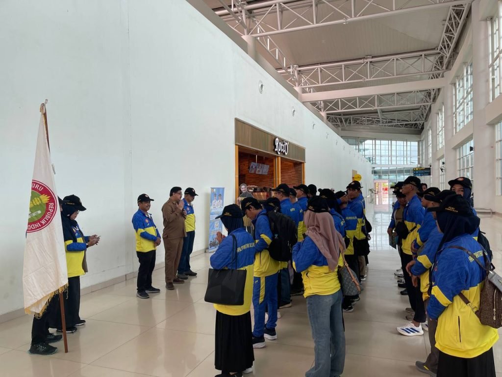 Pak Gubernur menitip pesan agar seluruh peserta menjaga sportivitas, menjaga kekompakan, dan berjuang untuk membawa nama baik Kalimantan Selatan. Guru tidak hanya mengajar di sekolah, tetapi juga harus menunjukkan peran dan kontribusi di masyarakat melalui olahraga, seni, dan pembelajaran,” ujar Muslim saat pelepasan di Bandara Syamsuddin Noor, Banjarbaru, Selasa (25/11/2025).