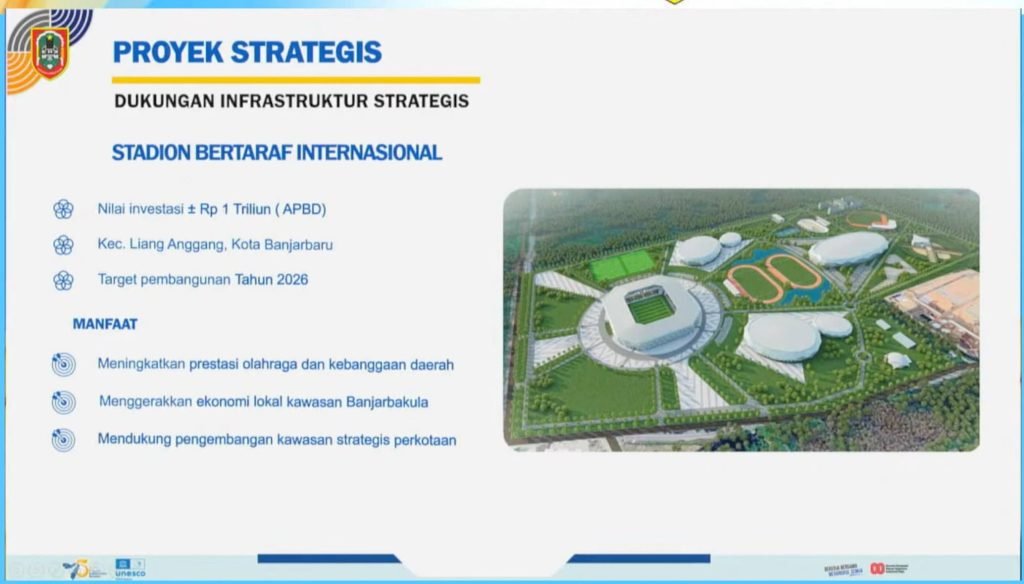 Tidak hanya itu, pembangunan stadion bertaraf internasional di kawasan Liang Anggang, Banjarbaru, juga menjadi prioritas. Stadion ini diharapkan tidak hanya menjadi fasilitas olahraga, tetapi juga mampu mendorong pertumbuhan ekonomi melalui kegiatan event berskala nasional maupun internasional.