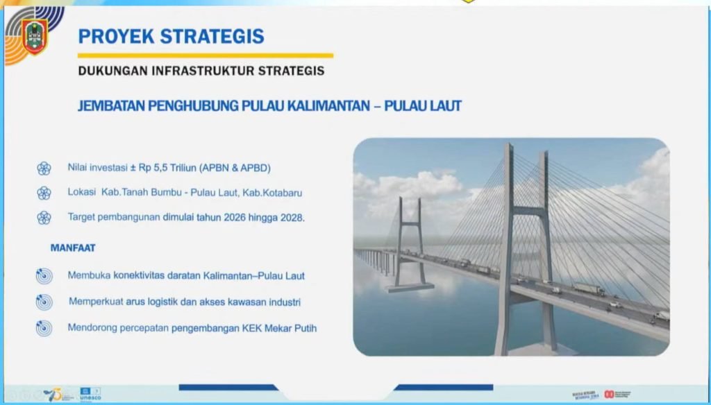 Salah satu proyek unggulan yang disampaikan adalah pembangunan Jembatan Pulau Laut yang menghubungkan Kabupaten Tanah Bumbu dan Kotabaru. Proyek ini memiliki nilai investasi besar dan dirancang sebagai pengungkit pertumbuhan ekonomi kawasan, khususnya dalam mendukung pengembangan kawasan industri dan pelabuhan.