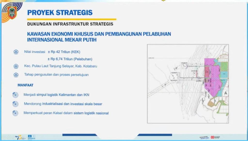 Gubernur juga menyinggung rencana pengembangan Kawasan Ekonomi Khusus (KEK) serta Pelabuhan Internasional Mekar Putih yang diproyeksikan menjadi salah satu pelabuhan terdalam di Indonesia. Proyek ini diharapkan mampu menarik investasi besar dan memperkuat posisi Kalimantan Selatan sebagai gerbang logistik regional.