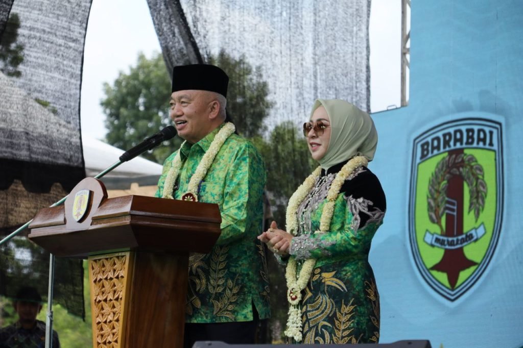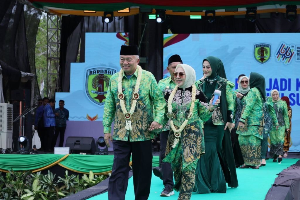 Gubernur Kalimantan Selatan, H. Muhidin, bersama Ketua TP PKK Provinsi Kalimantan Selatan, Fathul Jannah Muhidin, menghadiri puncak peringatan Hari Jadi Kabupaten Hulu Sungai Tengah (HST) ke-66 yang berlangsung meriah di Lapangan Dwi Warna, Kota Barabai, Rabu (17/12/2025).