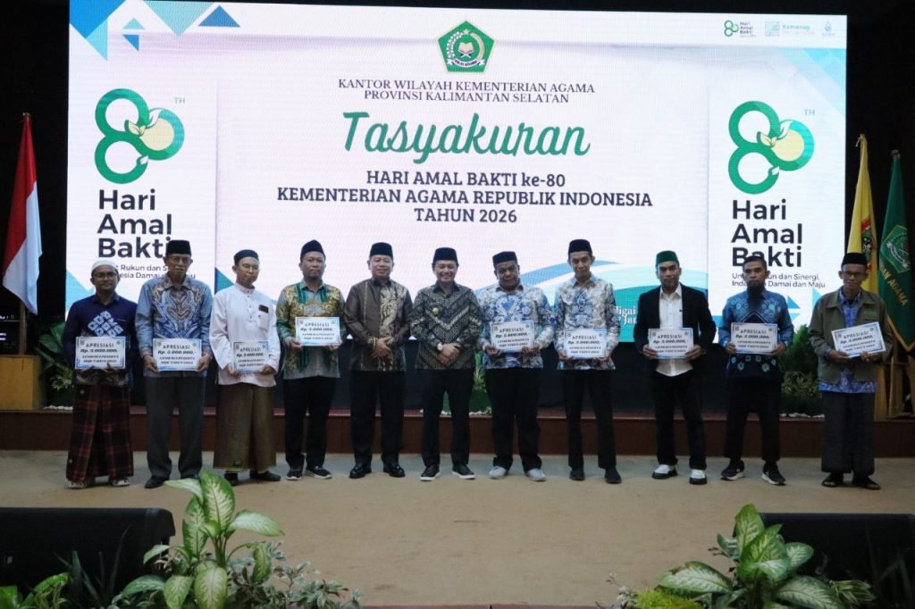 Wakil Gubernur Kalimantan Selatan (Kalsel), Hasnuryadi Sulaiman menekankan pentingnya kerukunan antarumat beragama sebagai fondasi utama persatuan bangsa. Pesan tersebut ia sampaikan saat menghadiri Tasyakuran Hari Amal Bakti (HAB) ke-80 Kementerian Agama Kalsel di Mahligai Pancasila, Banjarmasin, Rabu (7/1/2026).
