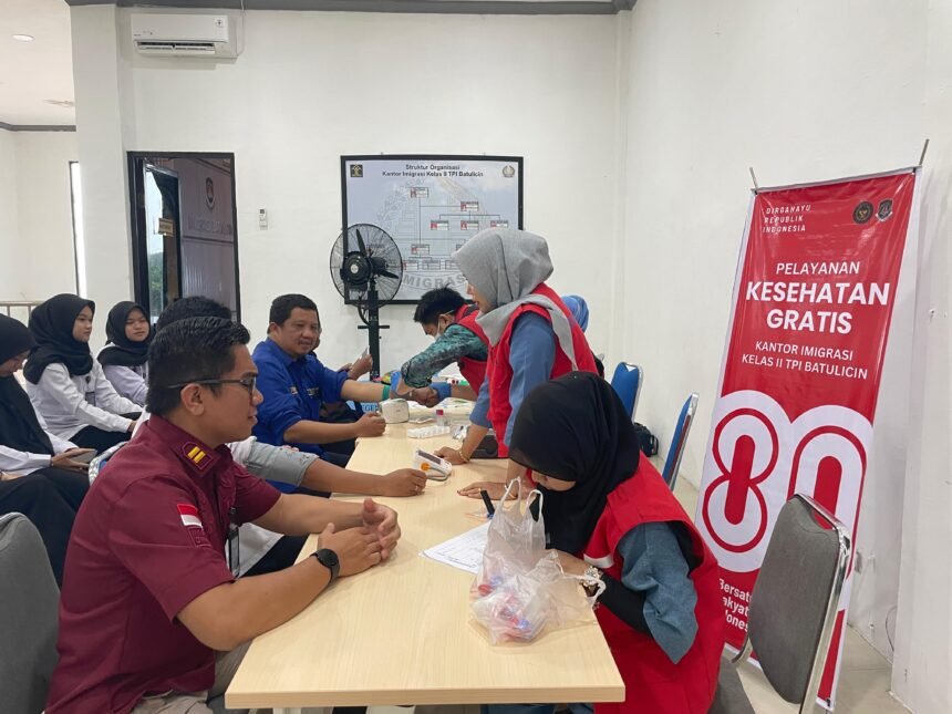 Kantor Imigrasi Kelas II TPI Batulicin menyelenggarakan pelayanan kesehatan gratis dan donor darah bagi seluruh pegawai.