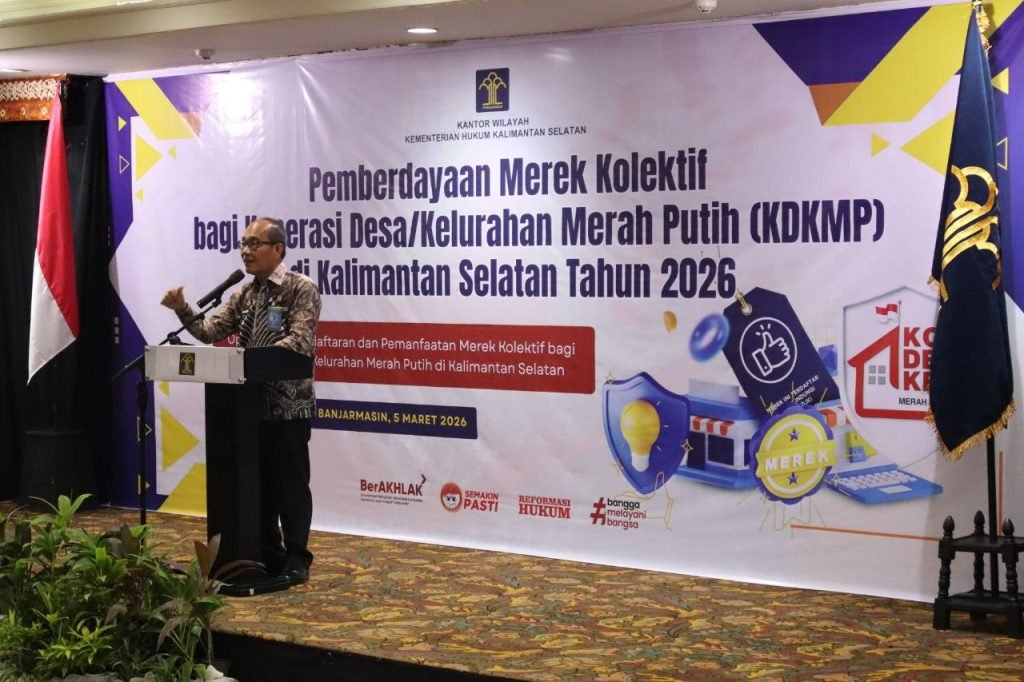 Hal tersebut disampaikannya saat memberikan sambutan sekaligus membuka kegiatan Pemberdayaan Merek Kolektif bagi Koperasi Desa/Kelurahan Merah Putih (KDKMP) di Kalimantan Selatan Tahun 2026 yang digelar di salah satu hotel di Banjarmasin, Kamis (5/3/2026).