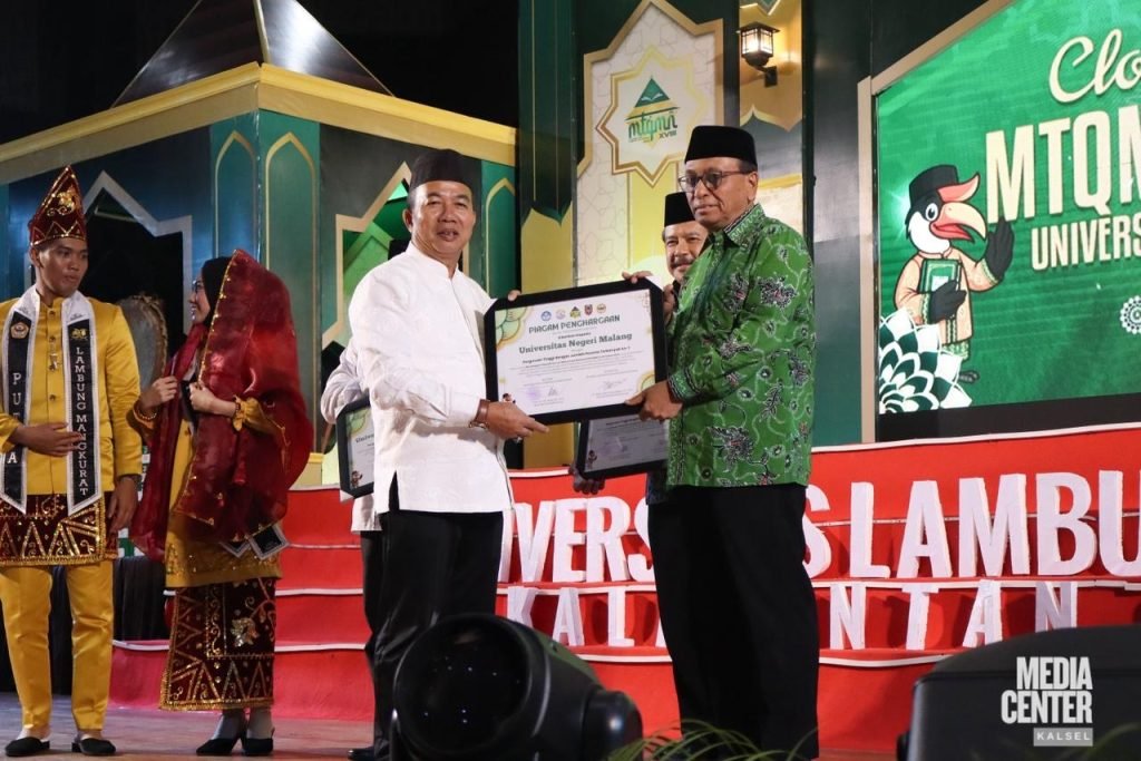 Hal tersebut diungkapkan Gubernur Kalimantan Selatan, H. Muhidin melalui Sekretaris Daerah Provinsi Kalimantan Selatan, Muhammad Syarifuddin dalam acara Penutupan Musabaqah Tilawatil Qur’an Mahasiswa Nasional (MTQMN) ke-XVIII Tahun 2025 di Auditorium ULM, Kamis (9/10/2025).