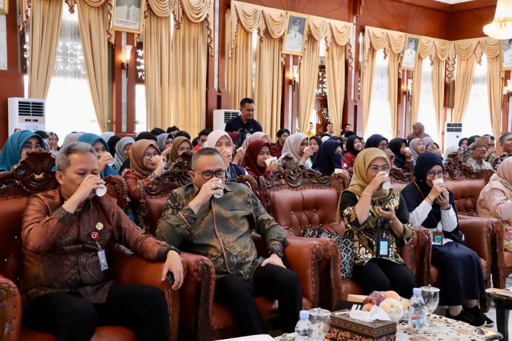 Direktorat Produksi dan Distribusi Kefarmasian, Direktorat Jenderal Kefarmasian dan Alat Kesehatan Kementerian Kesehatan RI menyelenggarakan Edukasi Pembuatan dan Penggunaan Jamu yang Aman, Bermutu, dan Bermanfaat di Gedung Mahligai Pancasila, Banjarmasin, Kamis (11/12/2035).