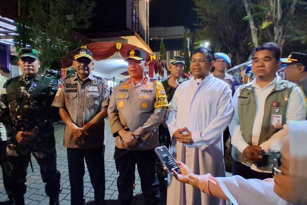“Malam ini kami bersama Forkopimda, Ketua DPRD, yang mewakili Pak Gubernur, Pangdam, Danlanal, Danlanud, serta seluruh pejabat utama Polda melaksanakan pengecekan langsung pengamanan perayaan Natal,” jelas Kapolda.