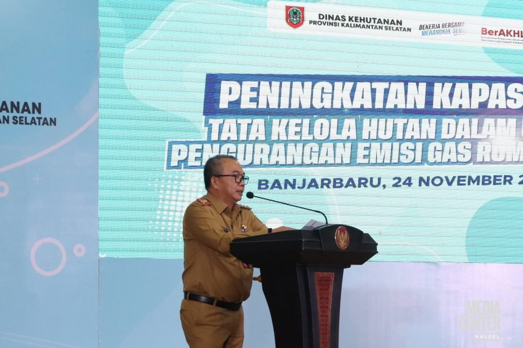 Pemerintah Provinsi Kalimantan Selatan melalui Dinas Kehutanan Provinsi Kalimantan Selatan menggelar Rapat Koordinasi Peningkatan Kapasitas Tata Kelola Hutan dalam Upaya Pengurangan Emisi Gas Rumah Kaca yang dilaksanakan di Gedung Idham Chalid Setdaprov Kalsel, Senin (24/11/2025).