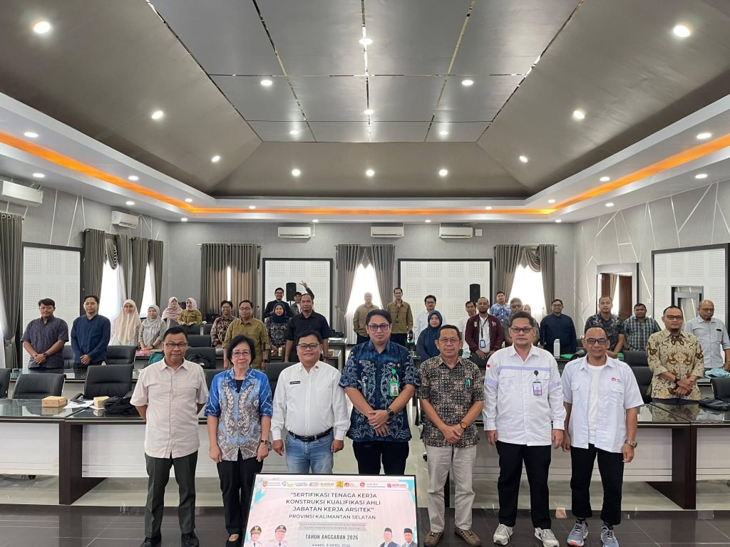 Pemerintah Provinsi Kalimantan Selatan melalui Dinas Pekerjaan Umum dan Penataan Ruang Provinsi Kalimantan Selatan (Kalsel) menggelar kegiatan Sertifikasi Tenaga Kerja Konstruksi Kualifikasi Ahli Jabatan Kerja Arsitek di Banjarbaru, Kamis (9/4/2026).