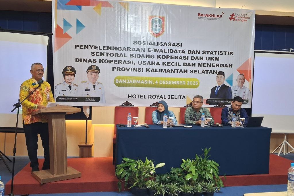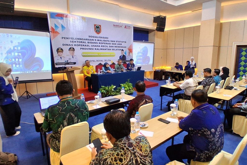 Pemerintah Provinsi Kalimantan Selatan kembali menunjukkan komitmennya untuk benar-benar hadir dalam mendampingi pelaku usaha kecil. Melalui Dinas Koperasi dan UKM, pemerintah menggelar “Sosialisasi Penyelenggaraan Walidata dan Statistik Sektoral Bidang Koperasi dan UKM” di salah satu hotel di Banjarmasin, Kamis (4/12/2025).