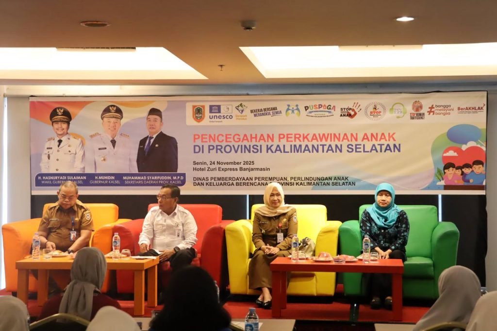 Perkawinan anak masih menjadi persoalan serius yang perlu mendapat perhatian bersama. Untuk memperkuat langkah pencegahannya, Pemerintah Provinsi Kalimantan Selatan melalui Dinas Pemberdayaan Perempuan, Perlindungan Anak dan Keluarga Berencana (DP3AKB) Provinsi Kalimantan Selatan menggelar kegiatan Pencegahan Perkawinan Anak, di Banjarmasin, Senin (24/11/2025).