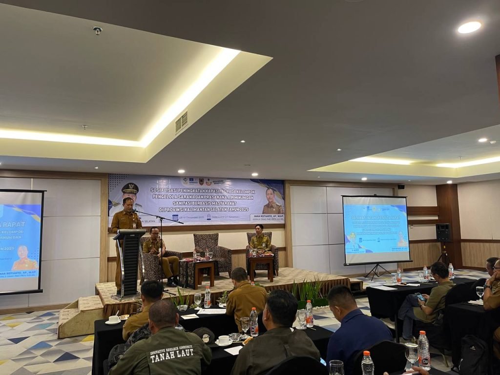 Pemerintah Provinsi Kalimantan Selatan melalui Dinas Pemberdayaan Masyarakat dan Desa (PMD) Kalsel menggelar Sosialisasi Peningkatan Kapasitas pada Kelompok Pengelola Sarana dan Prasarana Air Minum dan Sanitasi Berbasis Masyarakat Tahun 2025, di Banjarbaru, Senin (8/12/2025).