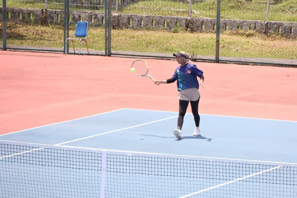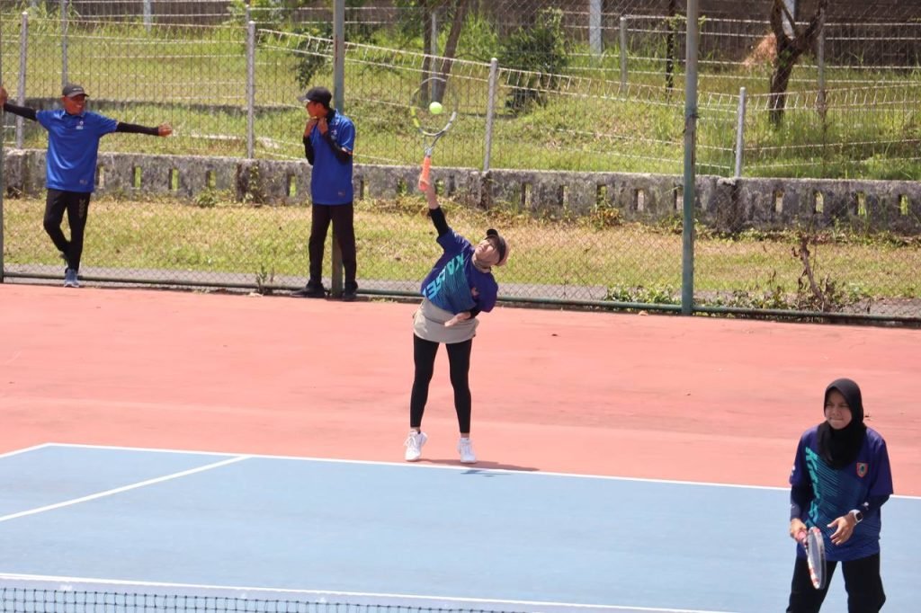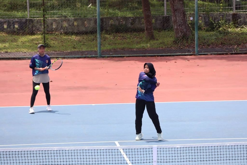 Langkah regu tenis putri Kalimantan Selatan (Kalsel) di ajang Pekan Olahraga Nasional (PORNAS) XVII KORPRI 2025 kian mantap. Bertanding di Lapangan Tenis Jakabaring, Palembang, Minggu (5/10/2025).