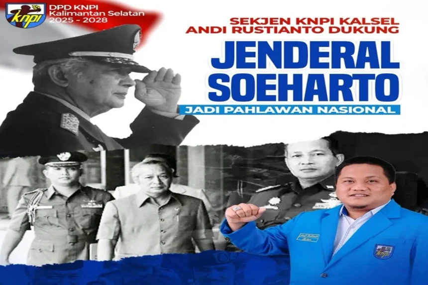 Sekretaris DPD KNPI Kalimantan Selatan, Andi Rustianto, menyatakan dukungan penuh terhadap langkah pemerintah untuk menganugerahkan gelar Pahlawan Nasional kepada Presiden Republik Indonesia ke-2 Soeharto, dengan alasan jasa-jasa beliau yang besar dalam memperjuangkan kemerdekaan dan pembangunan bangsa.